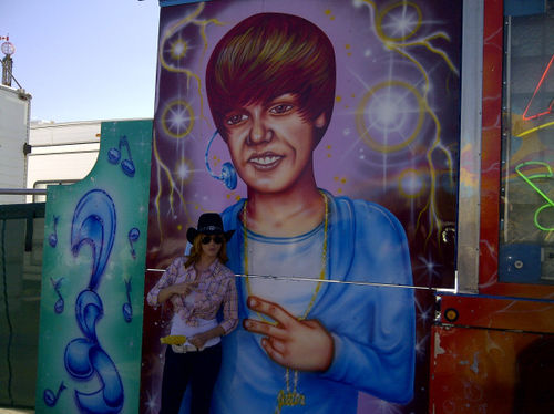 The young pop idol was represented in a funny fact that Justin Bieber took it with humor. 'Eating corn and spending time with my adopted son, The Biebs' Katy Perry announced on Twitter also published the picture.
